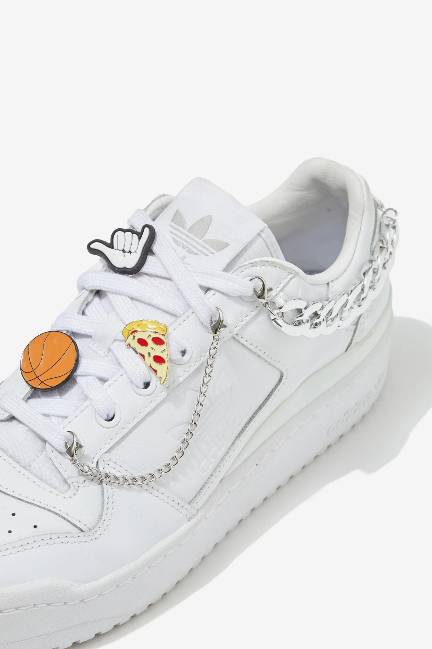 - Chains can be hooked on the laces or through eyelets